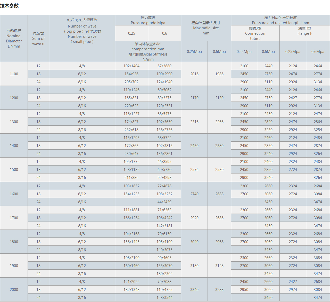 軸向補償量Axial compensation mm 軸向剛度Axial Stiffness N/mm |