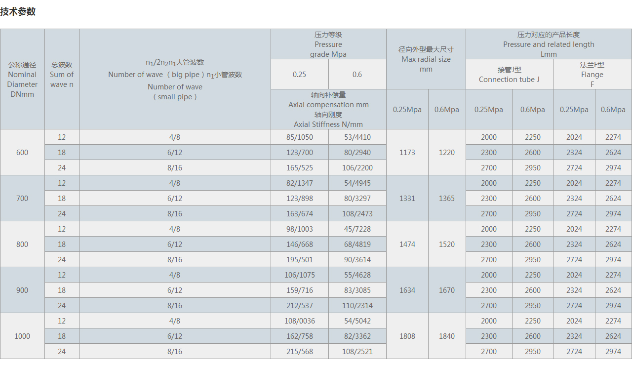 軸向補償量 Axial compensation mm 軸向剛度 Axial Stiffness N/mm |