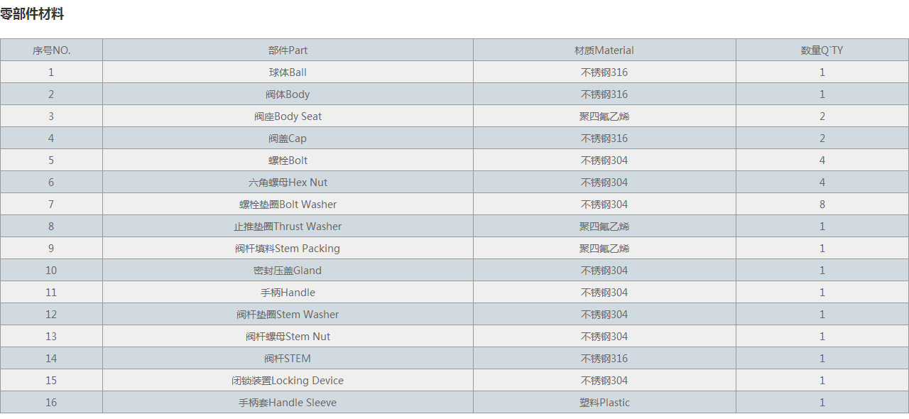 | 2 | 閥體Body | 不銹鋼316 | 1 |