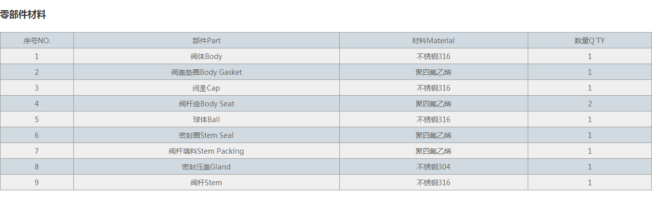 | 1 | 閥體Body | 不銹鋼316 | 1 |