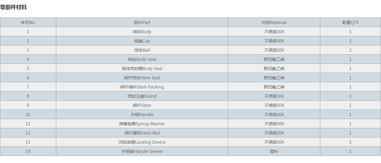 | 1 | 閥體Body | 不銹鋼304 | 1 |