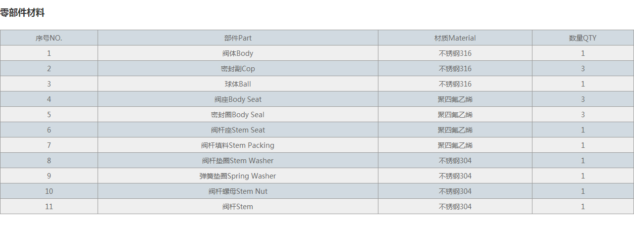 | 5 | 密封圈Body Seal | 聚四氟乙烯 | 3 |
