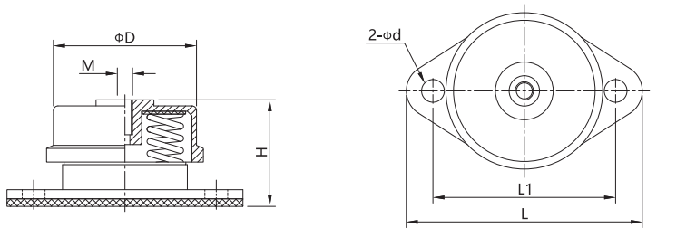 FZD型阻尼彈簧減震器產品主要特點與用途:FZD型阻尼彈簧減震器又稱預應力彈簧減振器,具有鋼制彈簧減震器的低頻率和阻尼大的雙重優點,消除鋼彈簧固有的共振振幅現象。該系列產品共20種規格,其單只荷載15kg-4800kg,各類荷載所應對的固有頻率2.0Hz-4.6Hz,阻尼比0.065。該系列減震器荷載范圍廣, 便于用戶選擇,固有頻率低,隔振效果好,并且結構緊湊,外形尺寸較小,安裝更換方便,使用安全可靠,工作壽命長,對工作環境適應性強,并能在-40℃-110℃環境下正常工作。對積極隔振、消極隔振、沖擊振動和固體傳聲的隔離均有明顯的效果。是隔離振動降低噪聲、治理振動公害、保護環境的理想減振器。ZTG型上下均可固定.