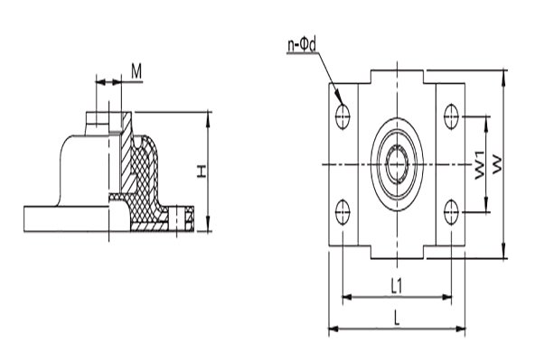 EA型橡膠避震器平置使用時,橫向穩定性好。當承受較大沖擊時,可自動限位保護,同時對共振峰的抑制能力很強,對瞬態沖擊響應瞬時過度工況等引起的自振能迅速消失,設備不致出現晃動。該產品在較寬的干擾頻率范圍內有相當明顯的隔振效果,能適用于各類陸地、船用機械設備,如柴油機、風機、水泵、空壓機、空調機、儀器儀表等中、小型機械設備的隔振。對有水平擾力的機械設備,使用本隔振器能取得良好的隔振效果。